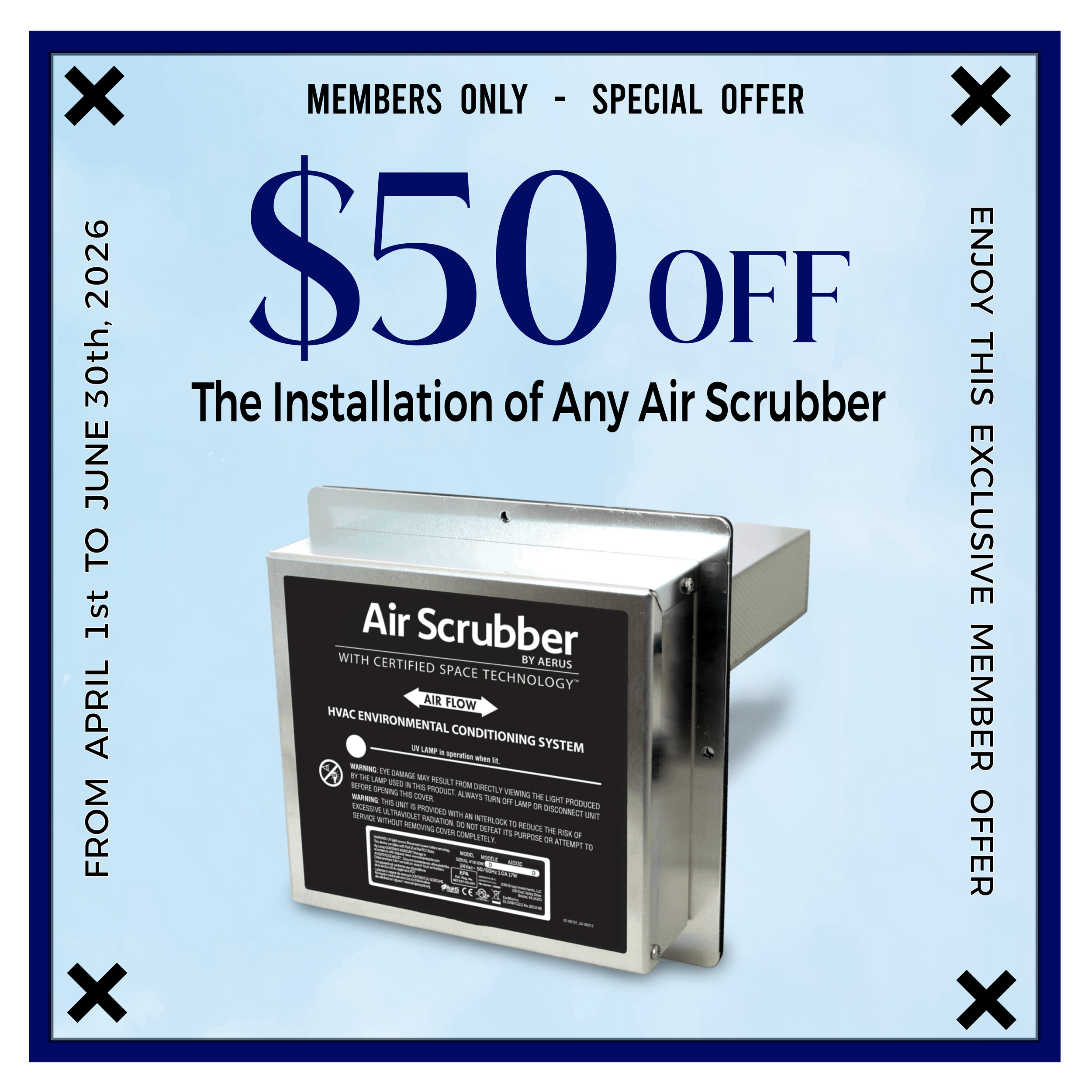 $50 OFF - installation of any Air Scrubber